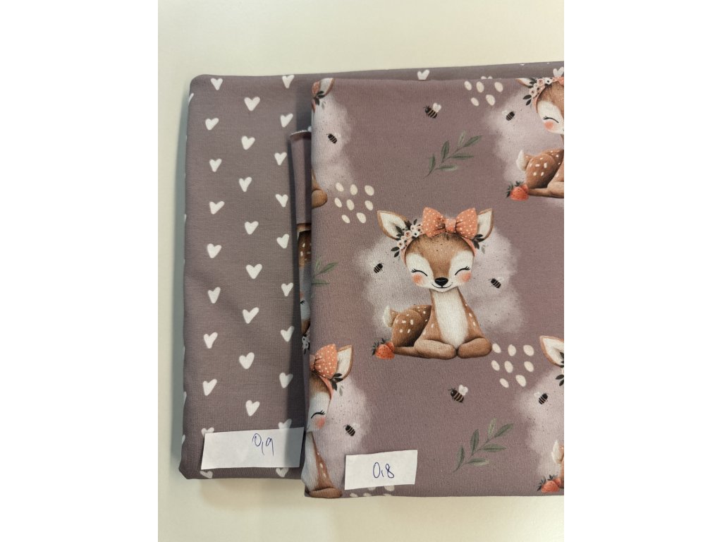 Teplákovina - Srdíčka lila 0,9 m + Teplákovina - Srnečka s mašlí 0,8 m