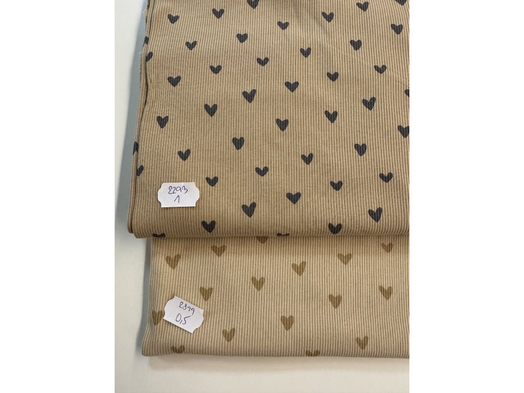 Žebrovaný úplet - Srdíčka světle béžová 0,5 m + Žebrovaný úplet - Tmavá srdíčka Cappucino 1 m