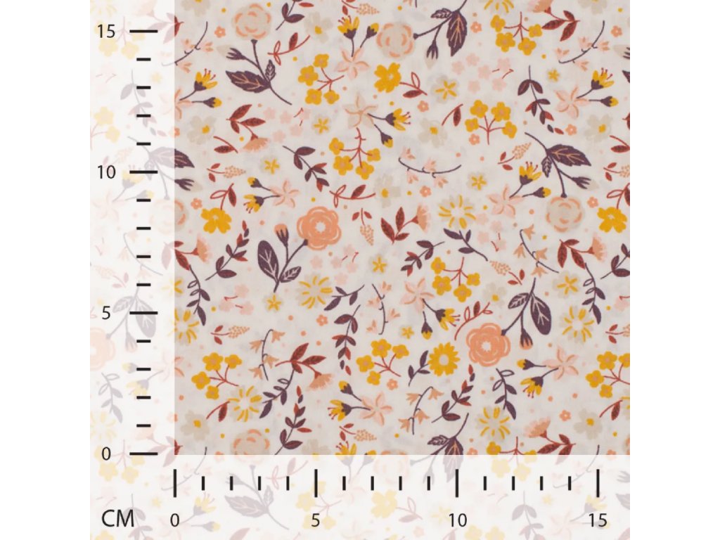 Bio Popelín - Kytičky na béžové je kvalitní volba pro vaše šicí projekty. Vhodná pro kreativní šití a snadné kombinování.