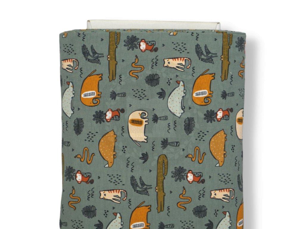 Bio Úplet Zvířata - Zelená je vyroben z biobavlny s příměsí elastanu pro komfort a pružnost. Je šetrný k pokožce a ideální na dětské oblečení, pyžama a trička. Díky kvalitní přízi si udrží tvar i barvy i po častém praní.