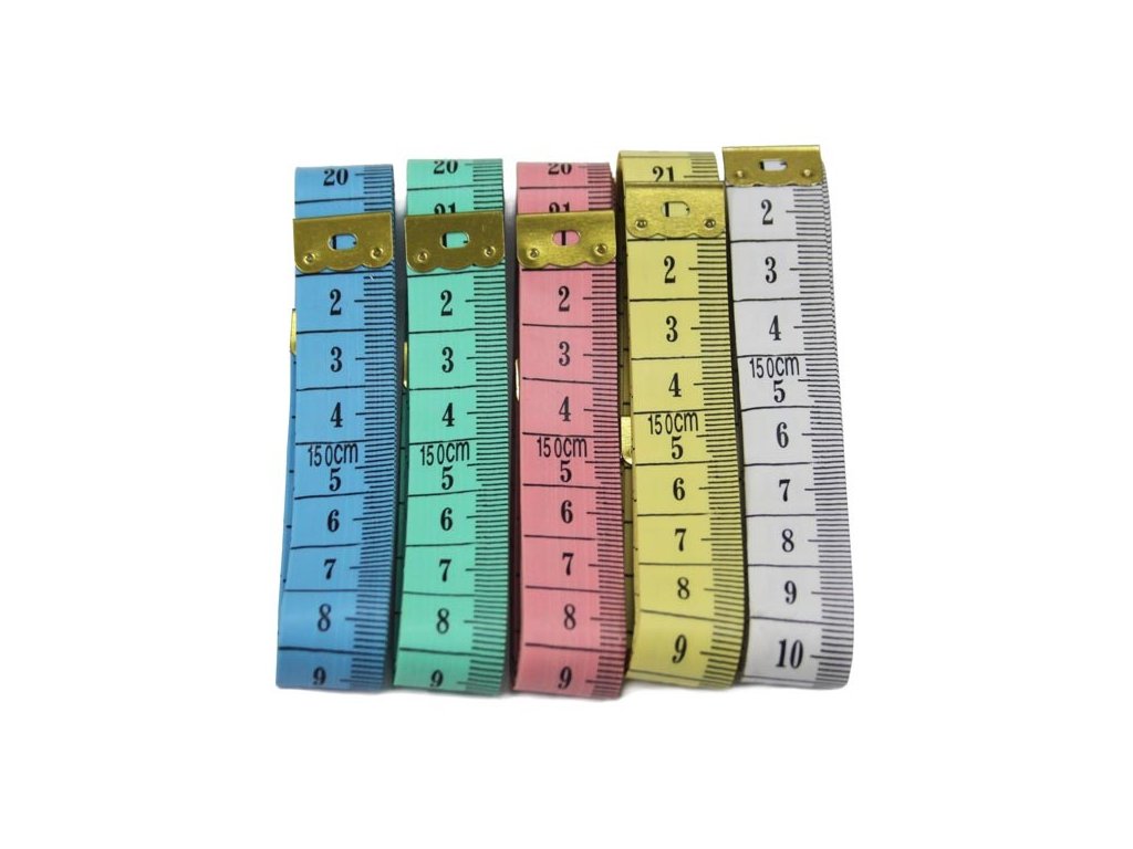 Krejčovský metr s mosaznou koncovkou, délka 150 cm. Metr má po obou stranách uvedeny jednotky v cm. Metry máme v barvách bílá, žlutá, růžová, zelená, modrá.