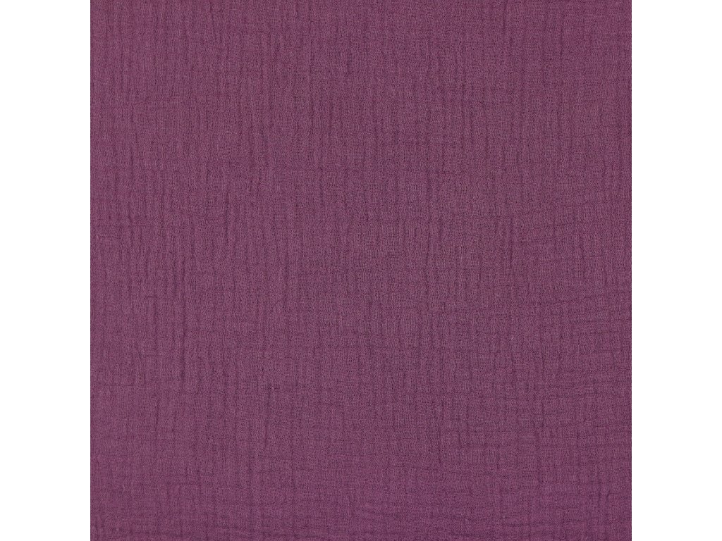 Mušelín - Purpurová je lehký a vzdušný (double gauze), příjemný i pro citlivou pokožku. Hodí se na letní šaty, šátky, dětské plenky a zavinovačky. Po vyprání získá typickou jemně zmačkanou strukturu, která se nežehlí.