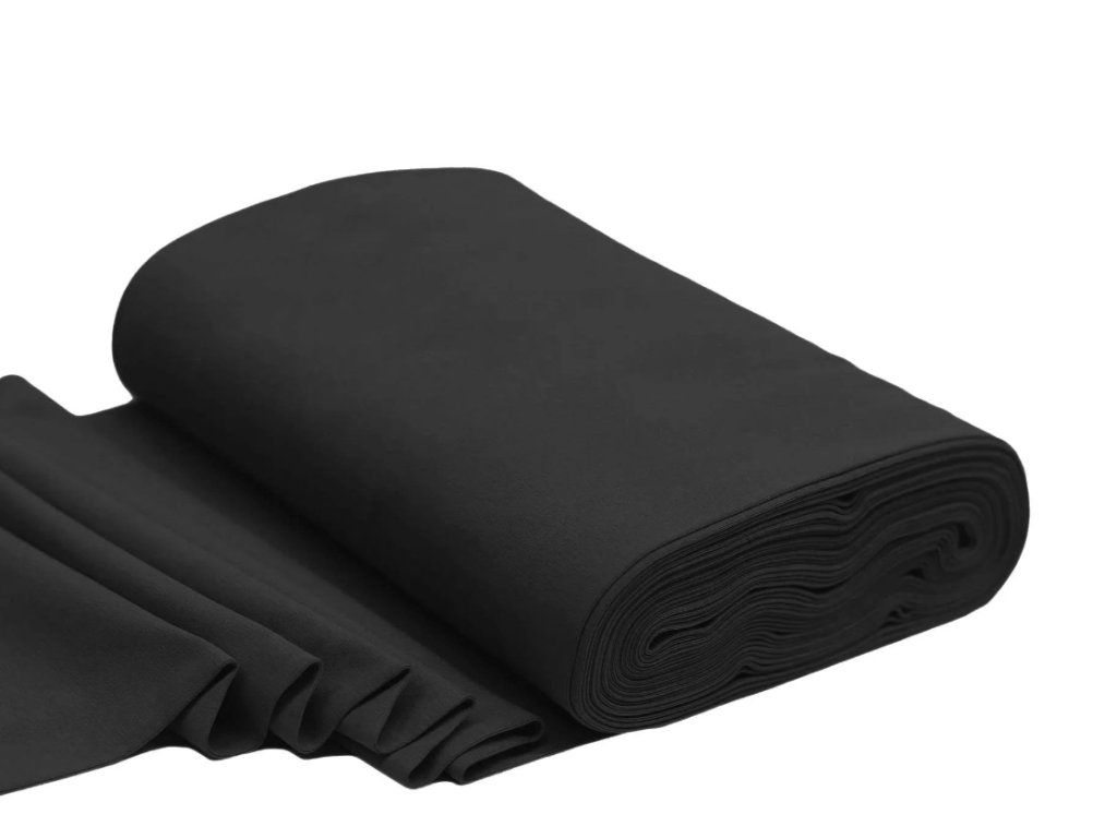 🧵 Náplet - Černá je pružný materiál určený pro zakončení rukávů, pasů a kapucí. Pomáhá hezky držet lem a dodává oblečení profesionální vzhled. Barevně ladí k úpletům a teplákovinám.