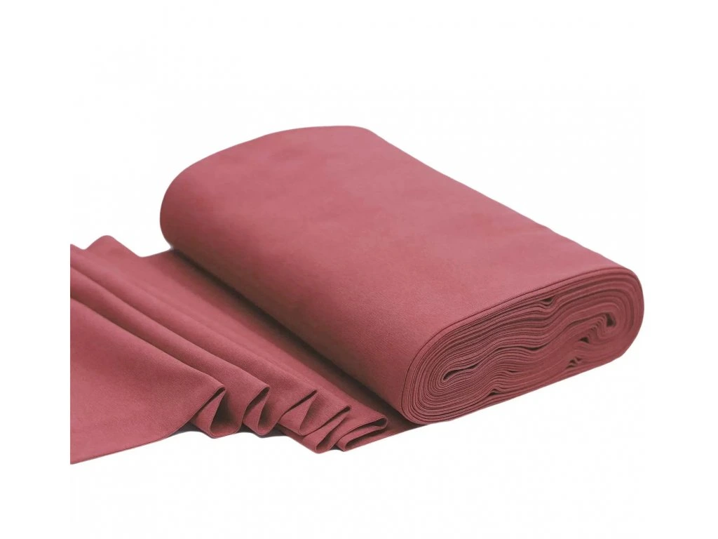 Náplet - Malinová je pružný materiál určený pro zakončení rukávů, pasů a kapucí. Pomáhá hezky držet lem a dodává oblečení profesionální vzhled. Barevně ladí k úpletům a teplákovinám.