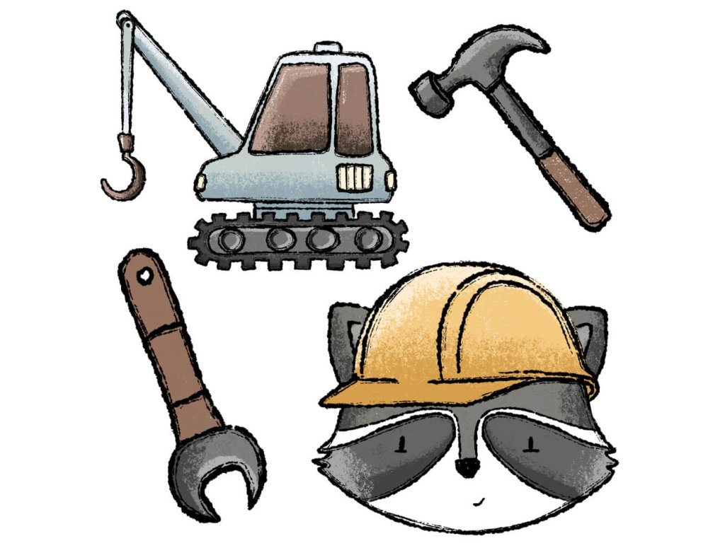 - Obsahuje více motivů – bagr, zvířátka i nářadí