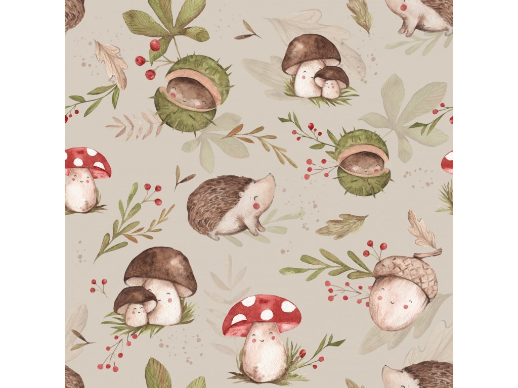 Softshell - Ježek s kaštany je odolný materiál, který chrání před větrem a vlhkostí, zároveň zůstává prodyšný. Skvělá volba na dětské bundy, kalhoty a outdoorové doplňky. Dobře se udržuje a drží tvar i při častém nošení.