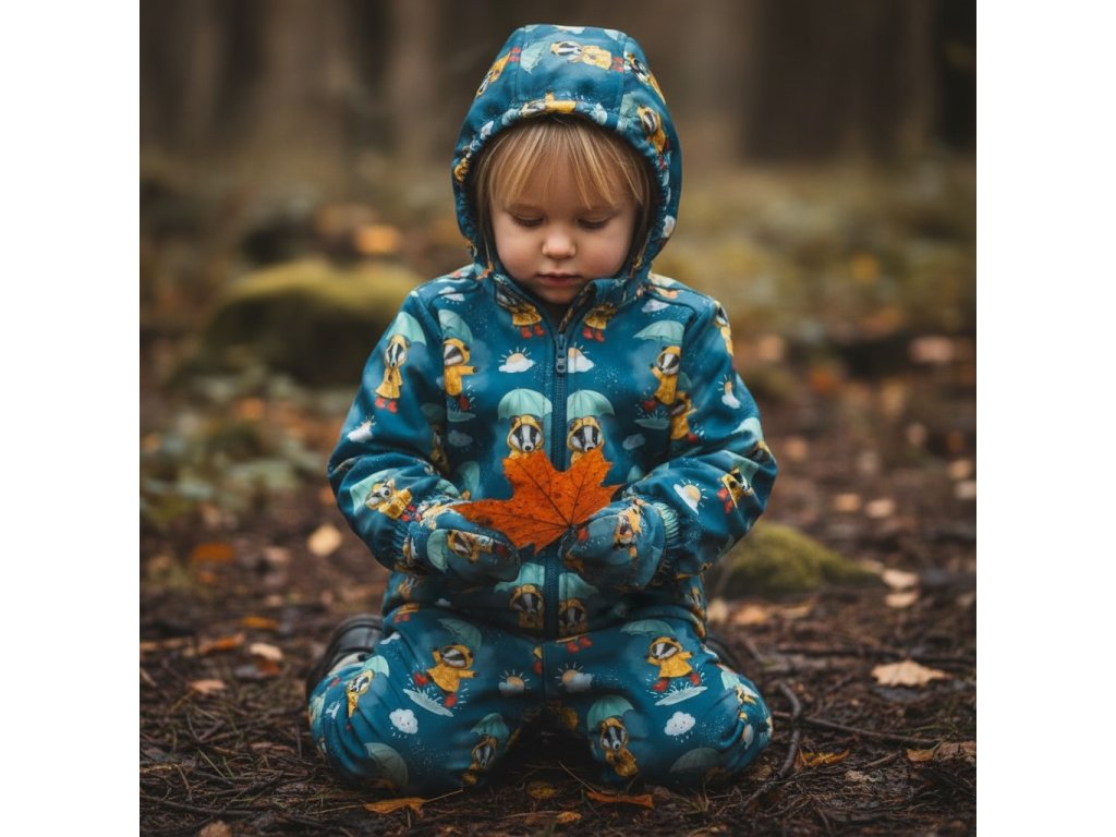 Originální softshell s motivem jezevce, který si poradí i s deštivým počasím. Ideální materiál na bundy, kalhoty či vesty pro malé i velké dobrodruhy. 🦡 Softshell je odolný vůči větru, nepromokavý a zároveň prodyšný – děti zůstanou v suchu a pohodlí. ✂️✨
