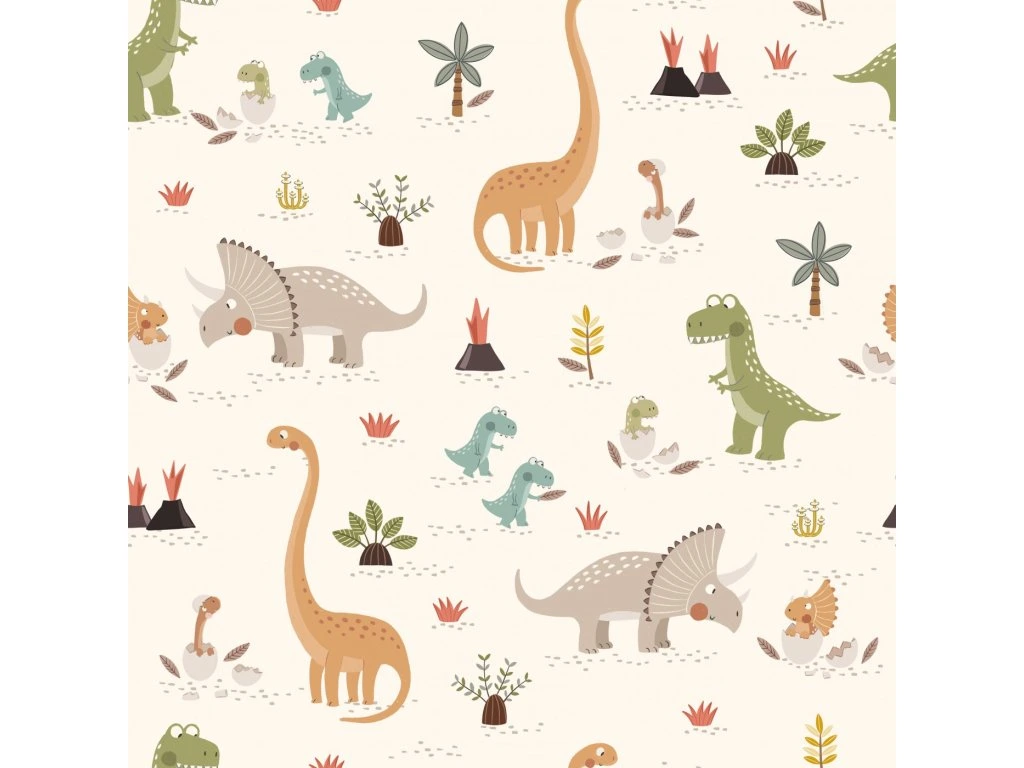Teplákovina - Dinoland je hřejivý a přitom prodyšný materiál ideální na mikiny, tepláčky, šaty a domácí sety. Na rubu může být jemně počesaný pro extra pohodlí. Snadno se kombinuje s náplety a žebrovanými úplety do barevně sladěných outfitů.