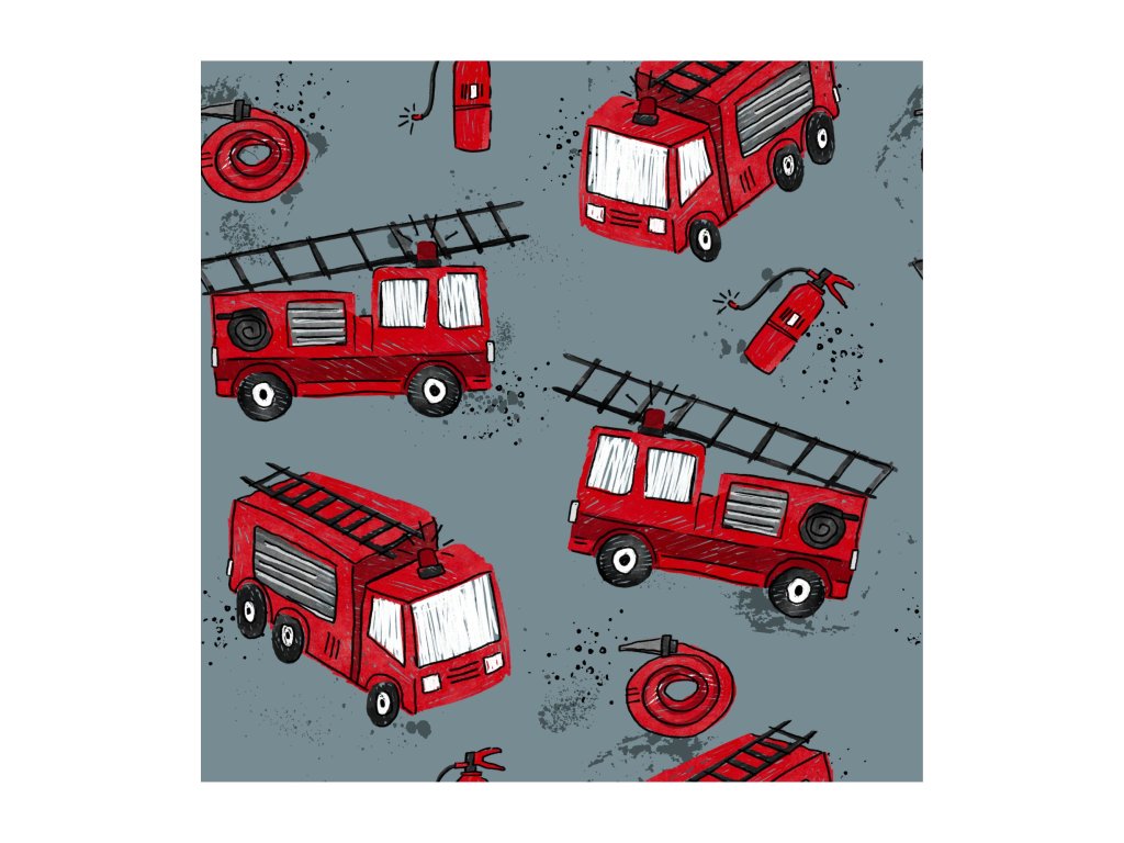Tahle autorská teplákovina potěší všechny malé i velké fanoušky hasičů! 🚒❤️ Šedý podklad s výraznými červenými vozy, hadicemi a žebříky tvoří zábavný a originální vzor, který si děti okamžitě zamilují. Látka je hřejivá, pružná a příjemná na dotek – ideální na mikiny, tepláky, šaty nebo doplňky.