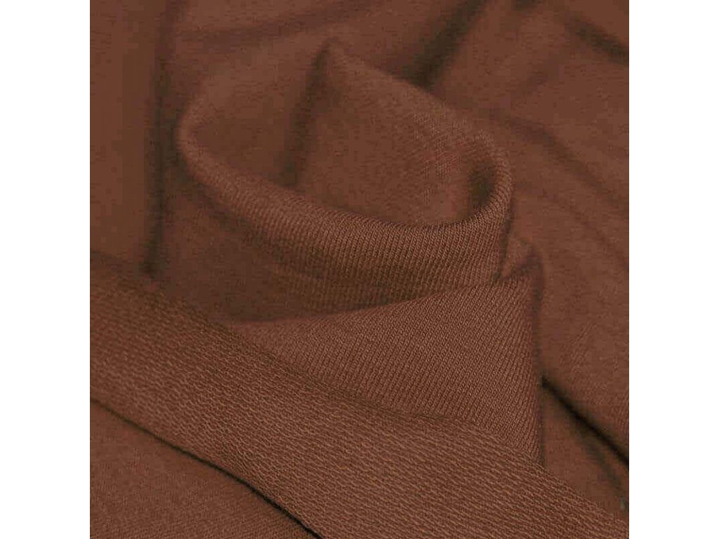 Teplákovina - Hnědá je měkká a hřejivá, ideální na mikiny, tepláčky a pohodlné sety. Materiál je příjemný na nošení a dobře se šije.