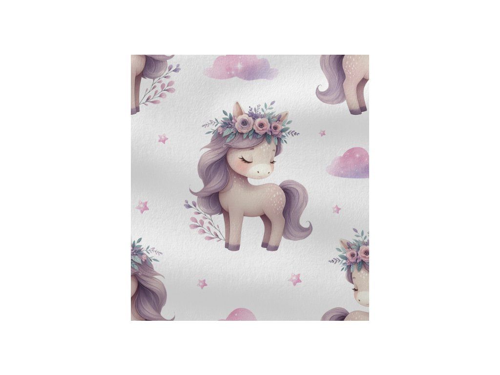Teplákovina s motivem koníků a obláčků je perfektní volbou pro tvorbu roztomilého a pohodlného oblečení. Jemný a hravý potisk potěší zejména děti, ale také všechny, kdo mají rádi něžné a pohádkové motivy. Materiál je měkký, na dotek příjemný a díky své pružnosti poskytuje pohodlí při každodenním nošení.