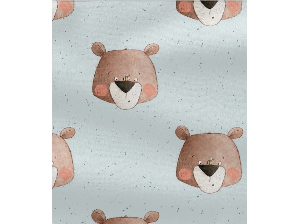 je jemná, pružná a hřejivá látka s roztomilým přírodním motivem, který potěší zejména děti. Potisk medvěda a včelky dodává oblečení hravý a přátelský vzhled, ideální pro každodenní nošení i speciální příležitosti.