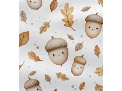 Krásná teplákovina „Teplákovina - Žaludy a listy“ – vhodný na šaty, trička i dětské oblečení. Kombinujte s našimi nažehlovačkami. 👶