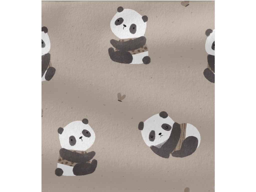 Teplákovina s potiskem pand je veselý a přátelský materiál, který potěší všechny milovníky zvířecích motivů. Roztomilé pandy dodají každému ušitému kousku hravý a něžný vzhled, vhodný pro děti i dospělé. Materiál je měkký, pružný a příjemný na dotek, takže poskytuje pohodlí při každodenním nošení.