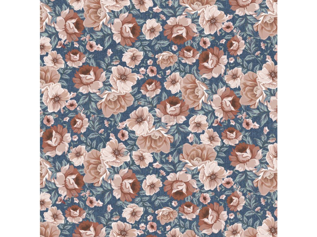 🧥 🌸 🔵 Teplákovina počesaná - Květy na modré