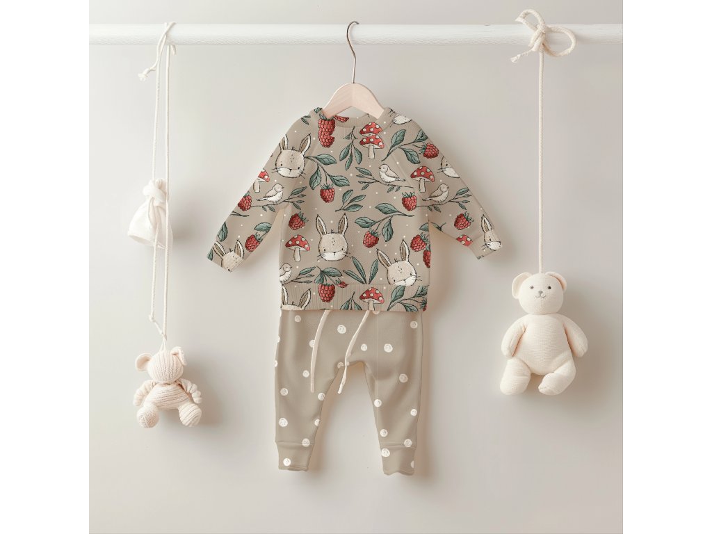 Teplákovina - puntíky na béžové jsou hřejivý a přitom prodyšný materiál ideální na mikiny, tepláčky, šaty a domácí sety. Na rubu může být jemně počesaný pro extra pohodlí. Snadno se kombinuje s náplety a žebrovanými úplety do barevně sladěných outfitů.