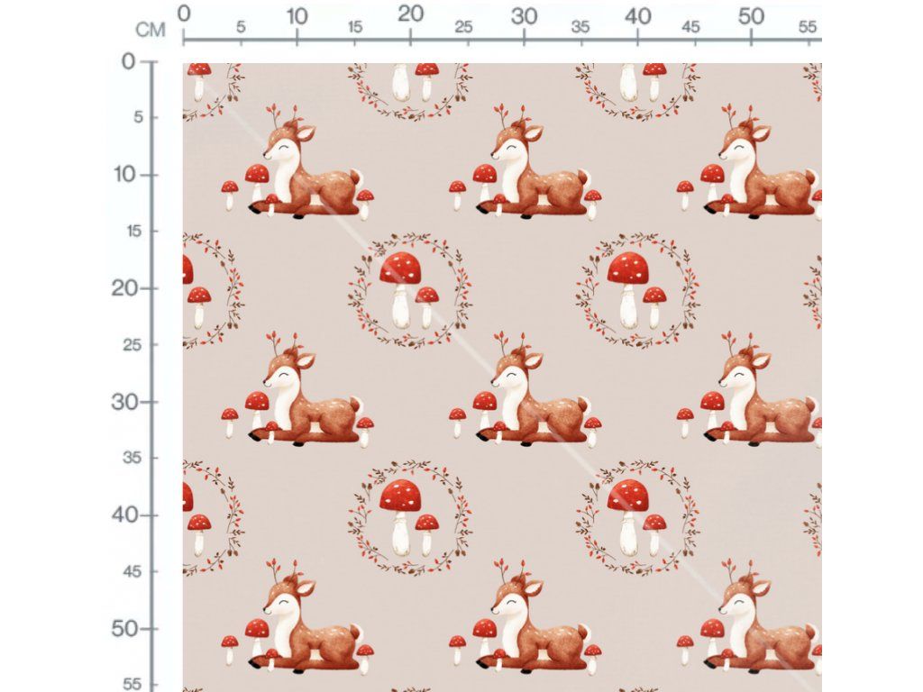 je jemná, hřejivá a pružná látka s roztomilým přírodním motivem, který potěší zejména děti. Potisk se srnečkem působí něžně a harmonicky, takže se hodí pro šití oblečení na každodenní nošení i speciální příležitosti.
