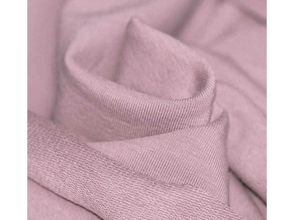 Teplákovina - Starorůžováj e měkká a hřejivá, ideální na mikiny, tepláčky a pohodlné sety. Materiál je příjemný na nošení a dobře se šije.