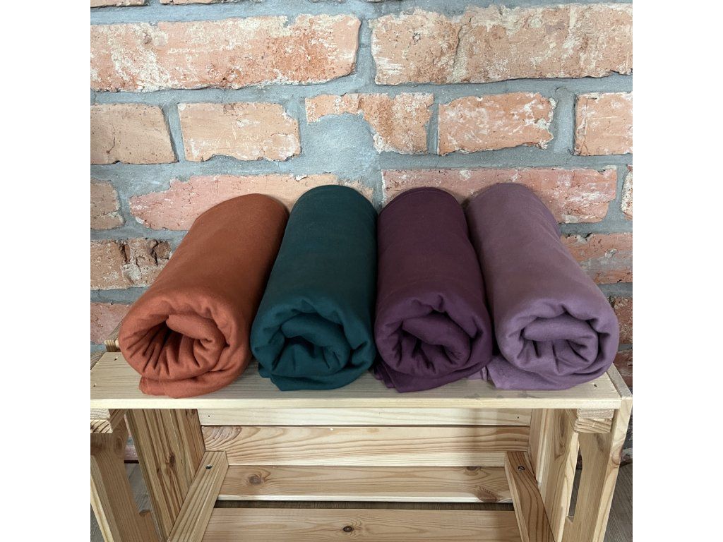 Teplákovina Sweat - Lilek je hřejivý a přitom prodyšný materiál ideální na mikiny, tepláčky, šaty a domácí sety. Na rubu může být jemně počesaný pro extra pohodlí. Snadno se kombinuje s náplety a žebrovanými úplety do barevně sladěných outfitů.