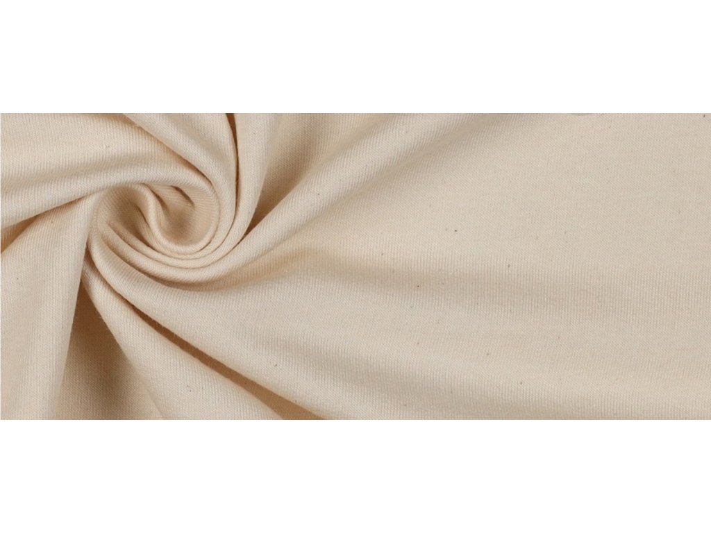Teplákovina Sweat - Smetanová přírodní je hřejivý a přitom prodyšný materiál ideální na mikiny, tepláčky, šaty a domácí sety. Na rubu může být jemně počesaný pro extra pohodlí. Snadno se kombinuje s náplety a žebrovanými úplety do barevně sladěných outfitů.