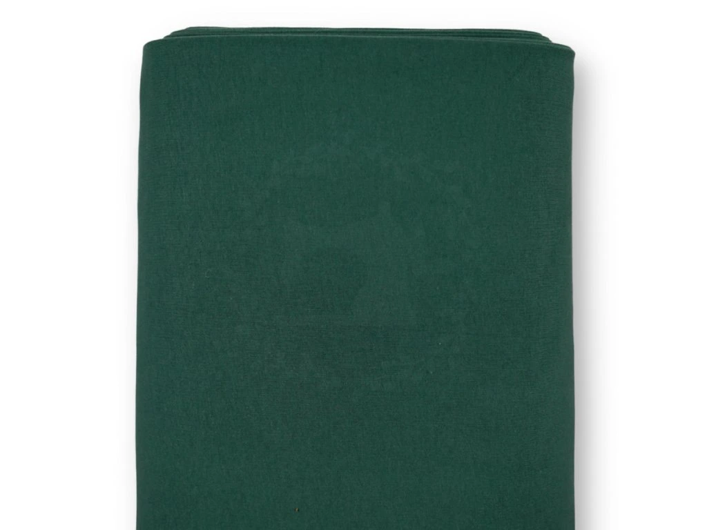 Teplákovina Sweat - Tmavě zelená je měkká a hřejivá, ideální na mikiny, tepláčky a pohodlné sety. Materiál je příjemný na nošení a dobře se šije.