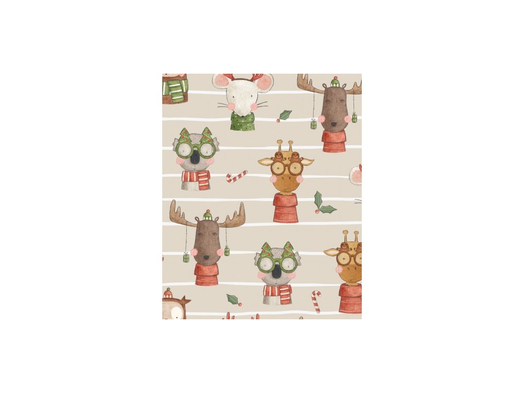 je kvalitní a příjemná látka s hravým svátečním motivem, která v sobě spojuje pohodlí, hřejivost a vánoční atmosféru. Potisk roztomilých zvířátek doplněný proužky přináší originální a veselý vzhled, ideální pro zimní a sváteční období.