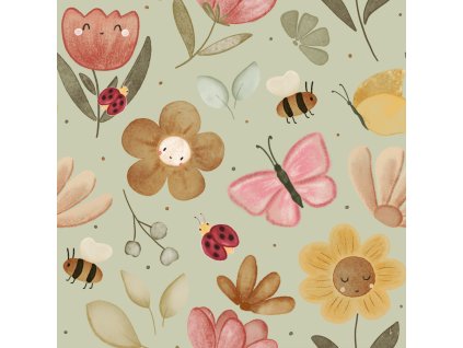 Krásná a kvalitní teplákovina „Teplákovina - Život na louce“ – ideální na originální šití. Perfektně ladí s našimi jednobarevnými úplety. 💕