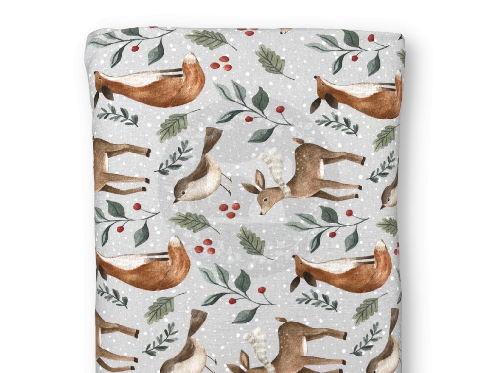 Teplákovina s potiskem zvířátek v zasněžené zimní krajině je jako stvořená pro šití oblečení, které zahřeje a potěší. Hravý motiv s liškami, zajíčky či srnkami v zimní atmosféře nadchne hlavně děti, ale ocení jej i dospělí, kteří mají rádi pohádkové vzory. Materiál je měkký, příjemný na dotek a pružný, což zaručuje pohodlí při nošení.