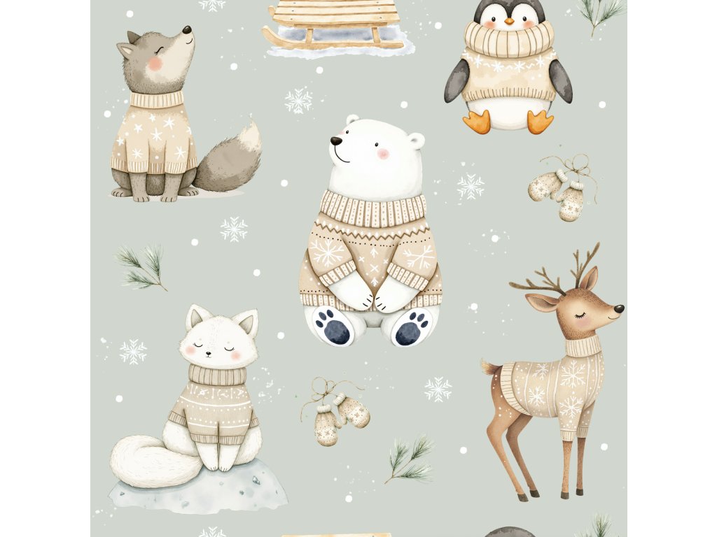 🧥 Teplákovina - Zvířátka ve svetru na mentolové