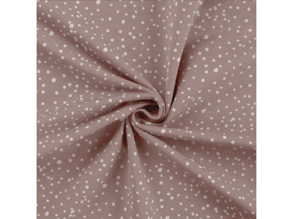 Úplet - Bílé puntíky na světle růžové je měkký a prodyšný úplet, vhodný na trička, šaty, pyžama i dětské oblečení. Materiál je poddajný, příjemný k pokožce a dobře se šije, takže je vhodný i pro začínající švadleny. Snadno jej zkombinujete s jednobarevnými i vzorovanými látkami.