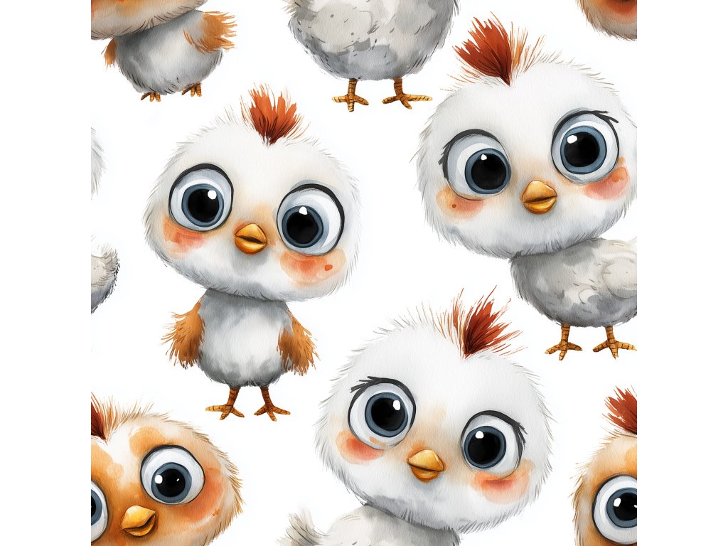 Pohodlný a pružný úplet s motivem Bláznivá kuřátka si zamilují malí i velcí parádníci. Skvělý na šití každodenních kousků, které se stanou oblíbenci dětského šatníku. Autorský vzor, který nikde jinde nenajdeš!