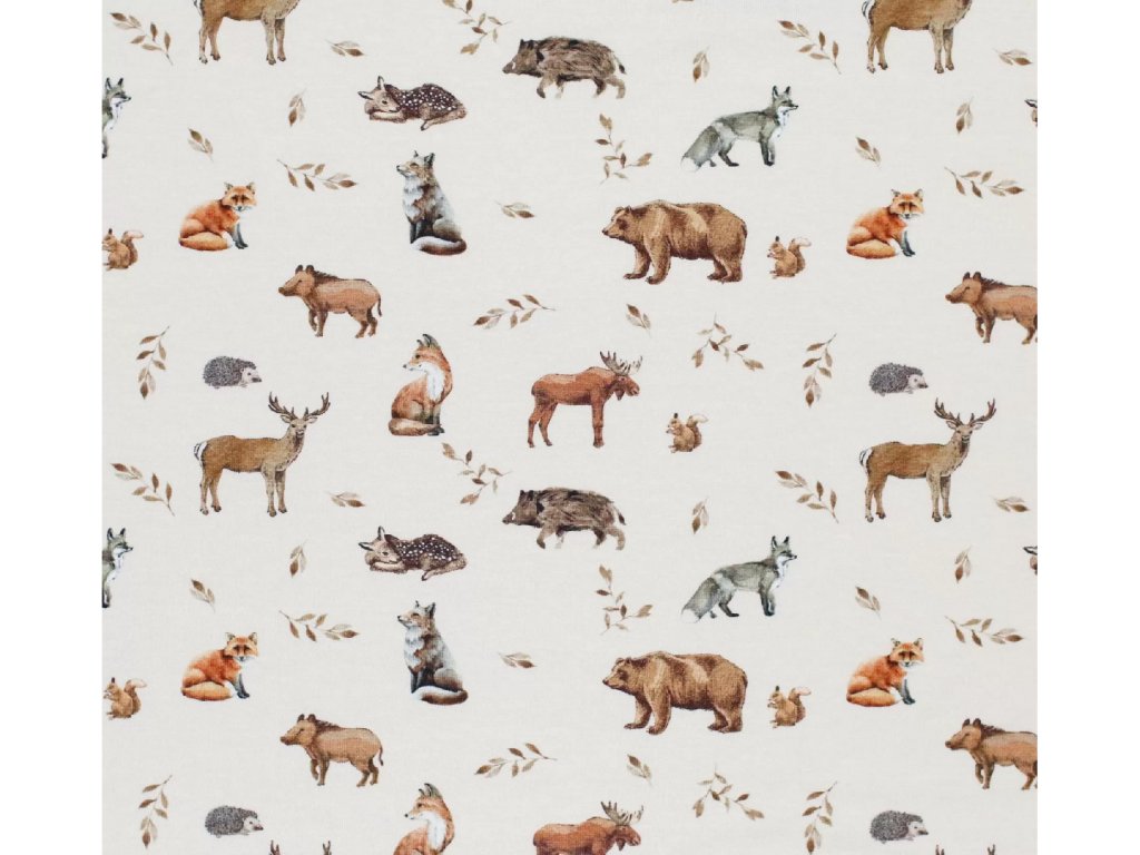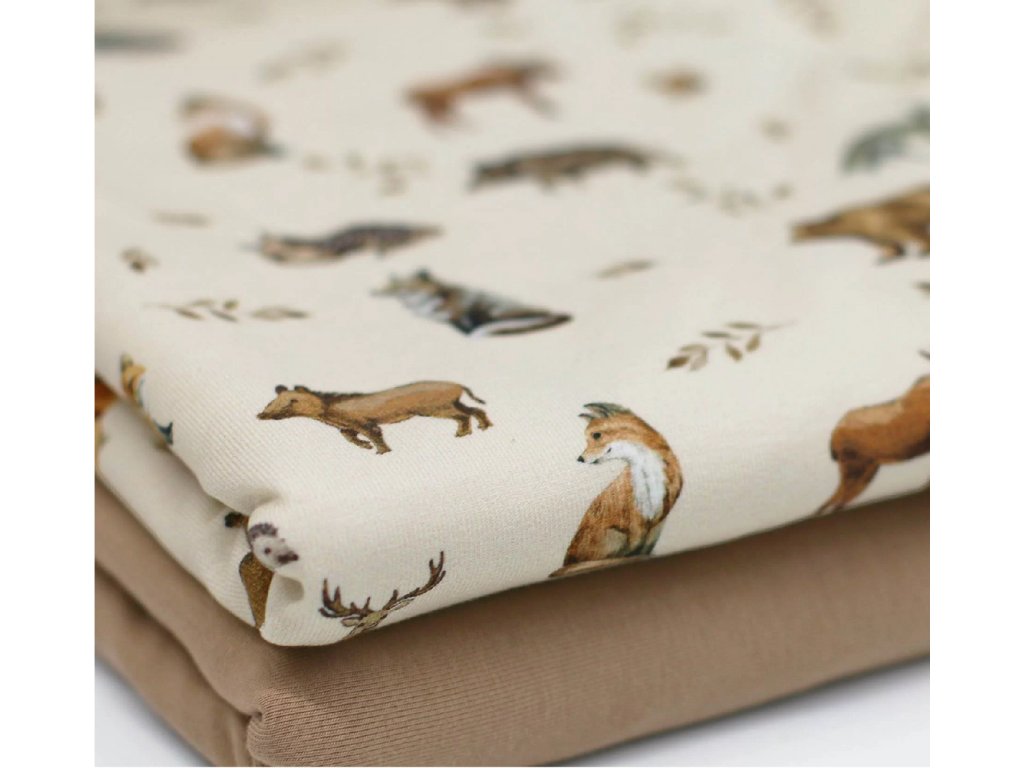 Úplet - Divoká zvířata je měkký a prodyšný úplet, vhodný na trička, šaty, pyžama i dětské oblečení. Materiál je poddajný, příjemný k pokožce a dobře se šije, takže je vhodný i pro začínající švadleny. Snadno jej zkombinujete s jednobarevnými i vzorovanými látkami.
