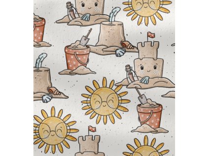 Úplet - Hrad z písku je příjemná a pružná látka vhodná na trička, šaty i dětské oblečení. Snadno se kombinuje s dalšími materiály a dobře drží tvar.