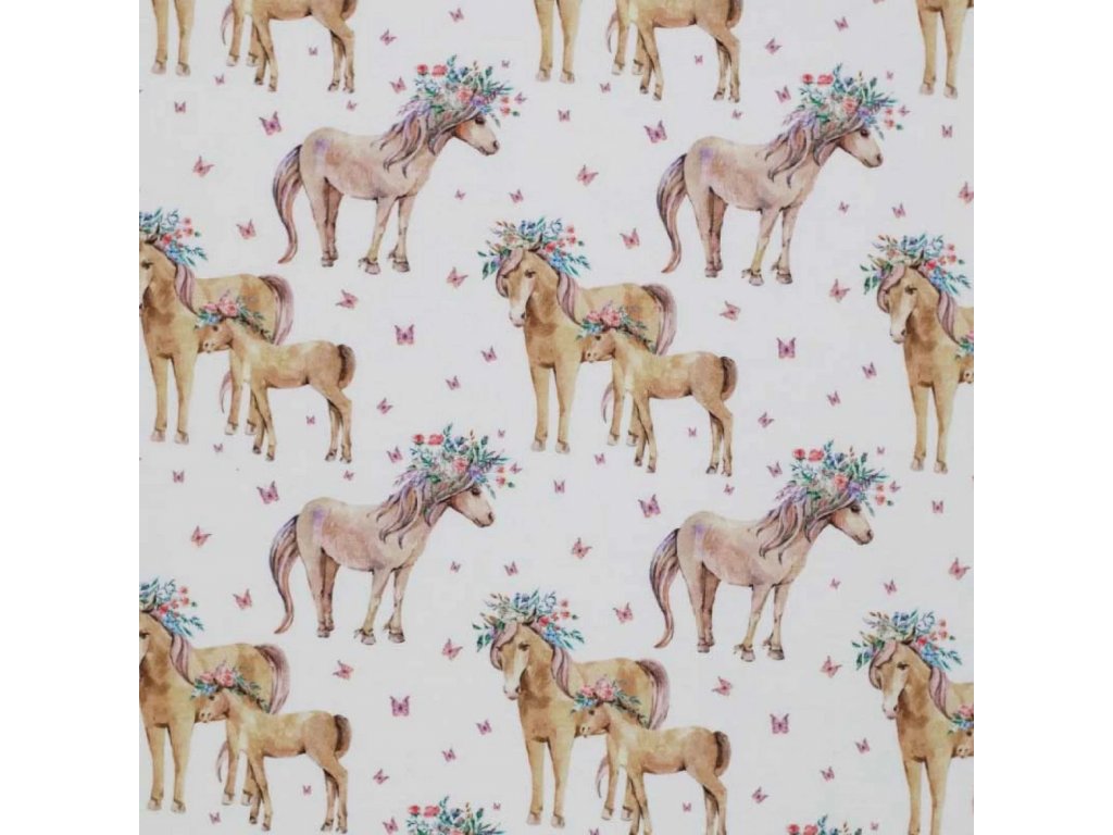 Úplet - Jednorožci s motýlky je měkký a prodyšný úplet, vhodný na trička, šaty, pyžama i dětské oblečení. Materiál je poddajný, příjemný k pokožce a dobře se šije, takže je vhodný i pro začínající švadleny. Snadno jej zkombinujete s jednobarevnými i vzorovanými látkami.