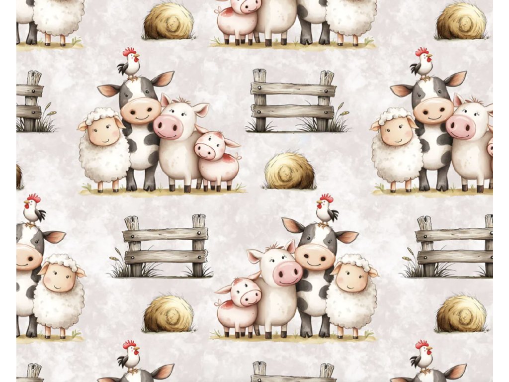 Pohodlný a pružný úplet s motivem farmy si zamilují malí i velcí parádníci. Skvělý na šití každodenních kousků, které se stanou oblíbenci dětského šatníku. Autorský vzor, který nikde jinde nenajdeš!