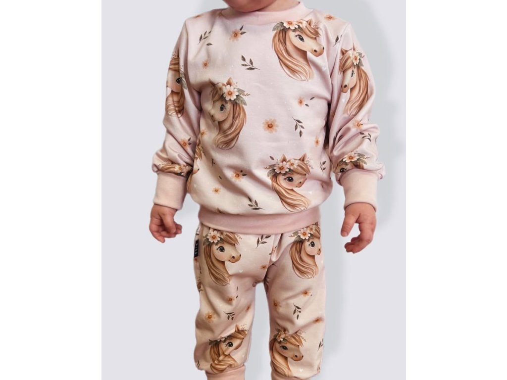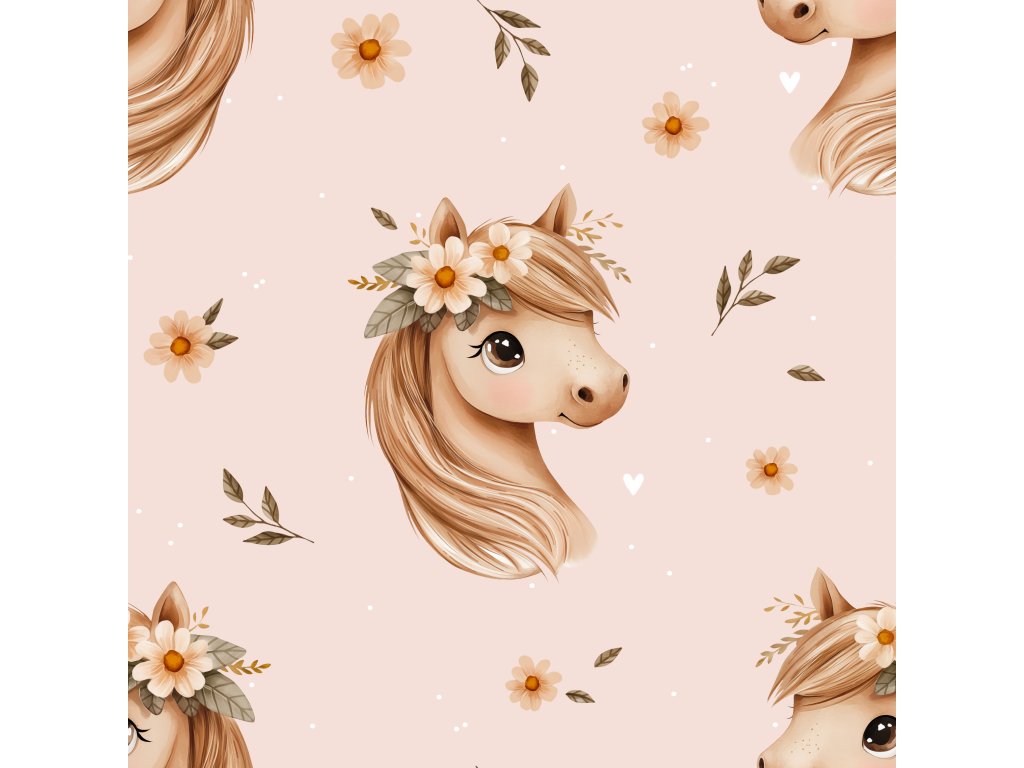 Úplet - Koník na růžové je příjemná a pružná látka vhodná na trička, šaty i dětské oblečení. Snadno se kombinuje s dalšími materiály a dobře drží tvar.
