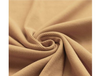 Úplet-Nepravidelný žebrovaný Béžová je pružný a pohodlný materiál se žebrovanou strukturou, který pěkně přiléhá k tělu a zároveň drží tvar. Hodí se na trička, šaty, legíny, čepice a nákrčníky pro děti i dospělé. Díky směsi bavlny s elastanem je příjemný na dotek, prodyšný a snadný na údržbu – ideální pro každodenní nošení.