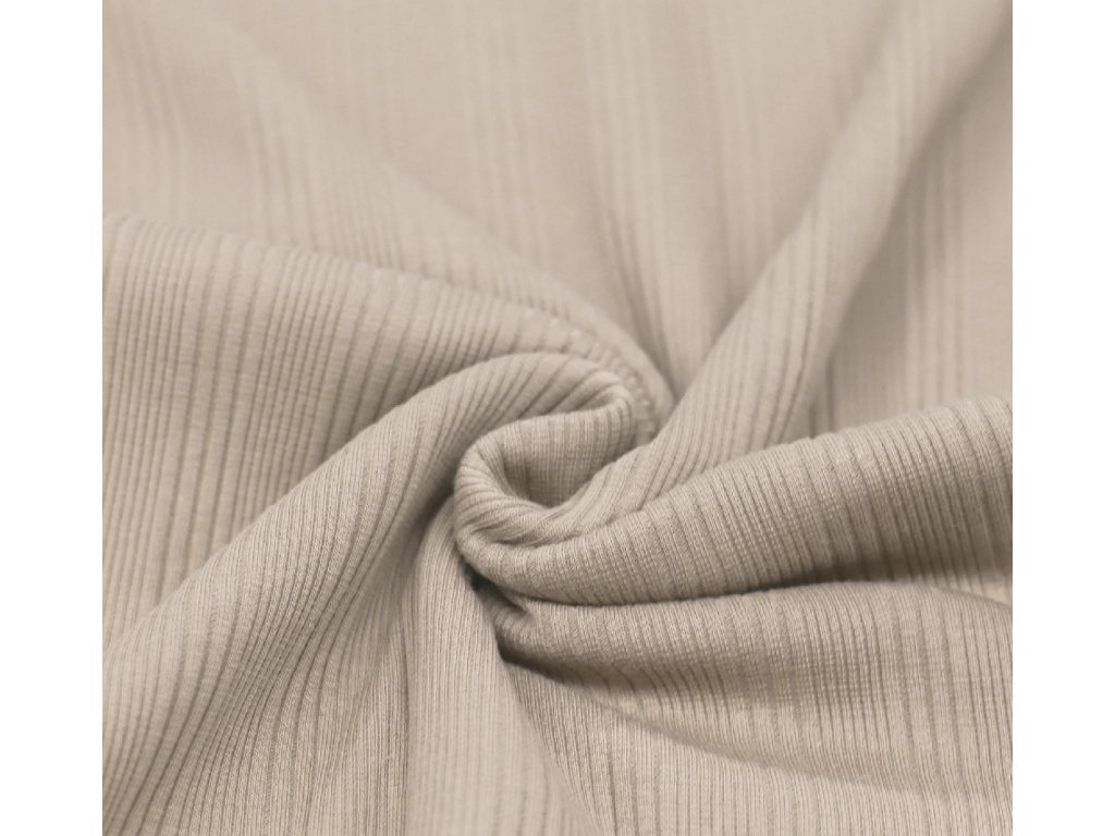 Úplet-Nepravidelný žebrovaný Béžová je příjemná a pružná látka vhodná na trička, šaty i dětské oblečení. Snadno se kombinuje s dalšími materiály a dobře drží tvar.
