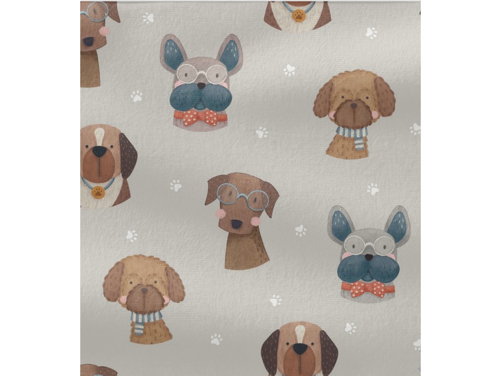 Úplet - Pejsci je měkký a prodyšný úplet, vhodný na trička, šaty, pyžama i dětské oblečení. Materiál je poddajný, příjemný k pokožce a dobře se šije, takže je vhodný i pro začínající švadleny. Snadno jej zkombinujete s jednobarevnými i vzorovanými látkami.