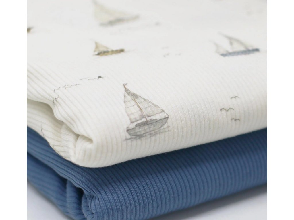 Úplet - Plachetnice je měkký a prodyšný úplet, vhodný na trička, šaty, pyžama i dětské oblečení. Materiál je poddajný, příjemný k pokožce a dobře se šije, takže je vhodný i pro začínající švadleny. Snadno jej zkombinujete s jednobarevnými i vzorovanými látkami.