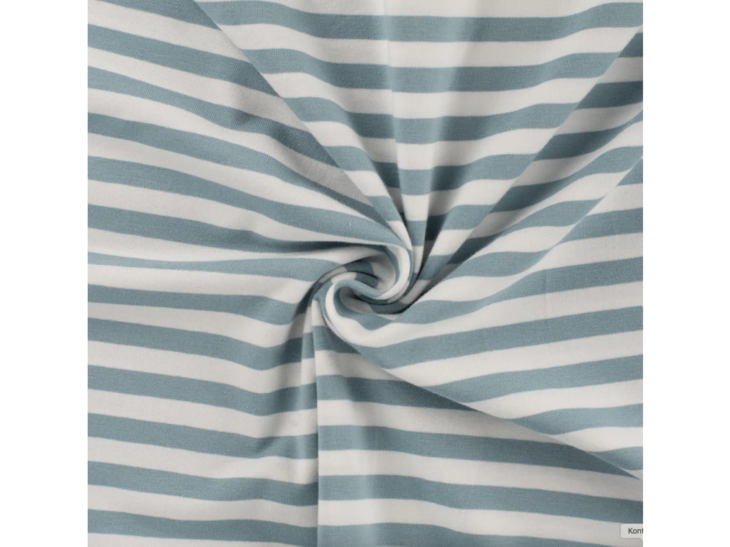 Úplet - Proužky mentolová je příjemná a pružná látka vhodná na trička, šaty i dětské oblečení. Snadno se kombinuje s dalšími materiály a dobře drží tvar.