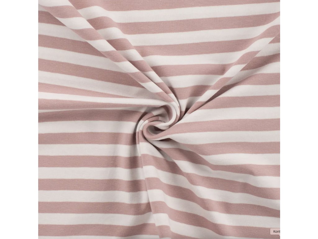 Úplet - Proužky světle růžová je měkký a prodyšný úplet, vhodný na trička, šaty, pyžama i dětské oblečení. Materiál je poddajný, příjemný k pokožce a dobře se šije, takže je vhodný i pro začínající švadleny. Snadno jej zkombinujete s jednobarevnými i vzorovanými látkami.