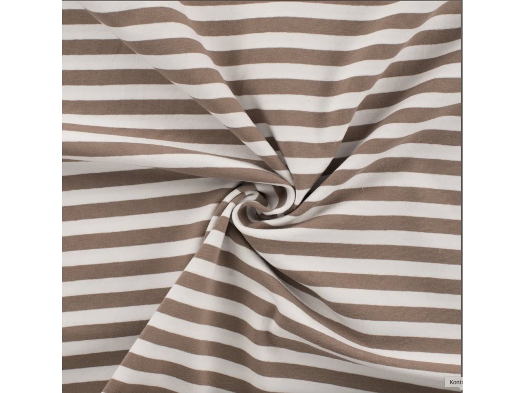 Úplet - Proužky taupe je měkký a prodyšný úplet, vhodný na trička, šaty, pyžama i dětské oblečení. Materiál je poddajný, příjemný k pokožce a dobře se šije, takže je vhodný i pro začínající švadleny. Snadno jej zkombinujete s jednobarevnými i vzorovanými látkami.