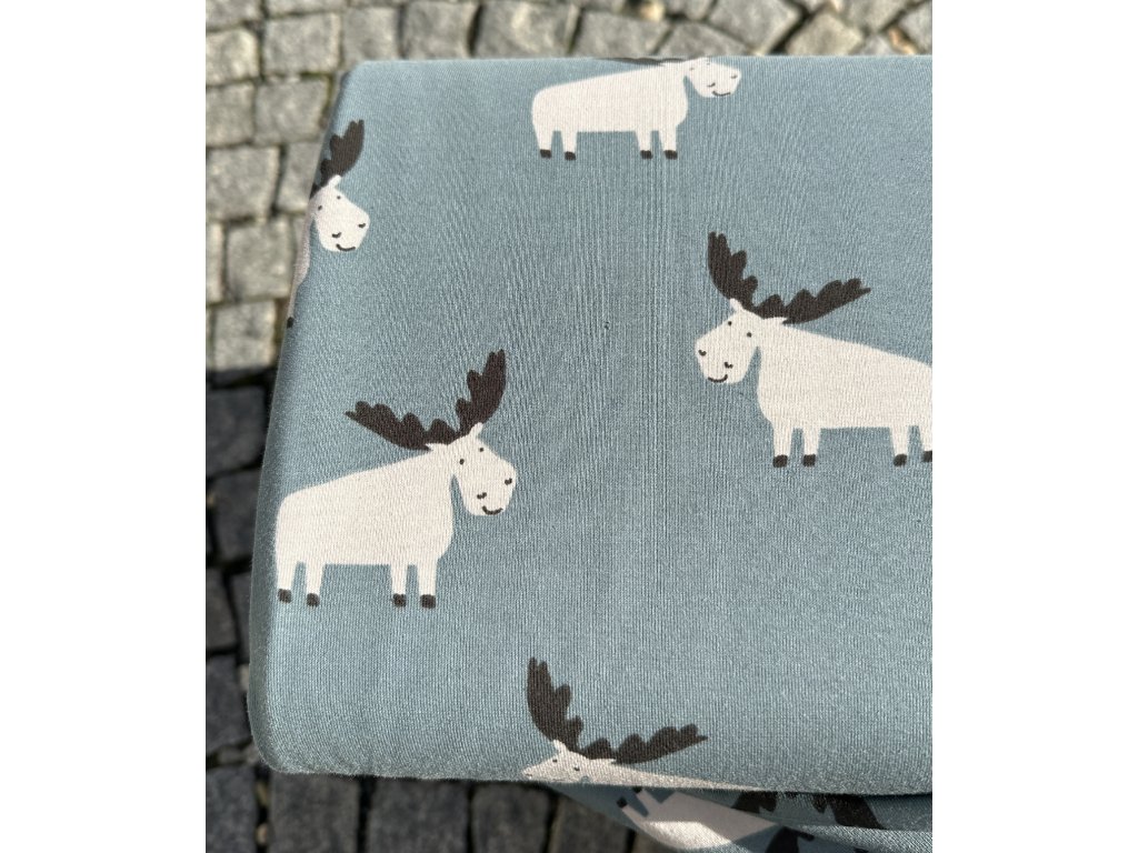 Úplet - Sob na modré je měkký a prodyšný úplet, vhodný na trička, šaty, pyžama i dětské oblečení. Materiál je poddajný, příjemný k pokožce a dobře se šije, takže je vhodný i pro začínající švadleny. Snadno jej zkombinujete s jednobarevnými i vzorovanými látkami.