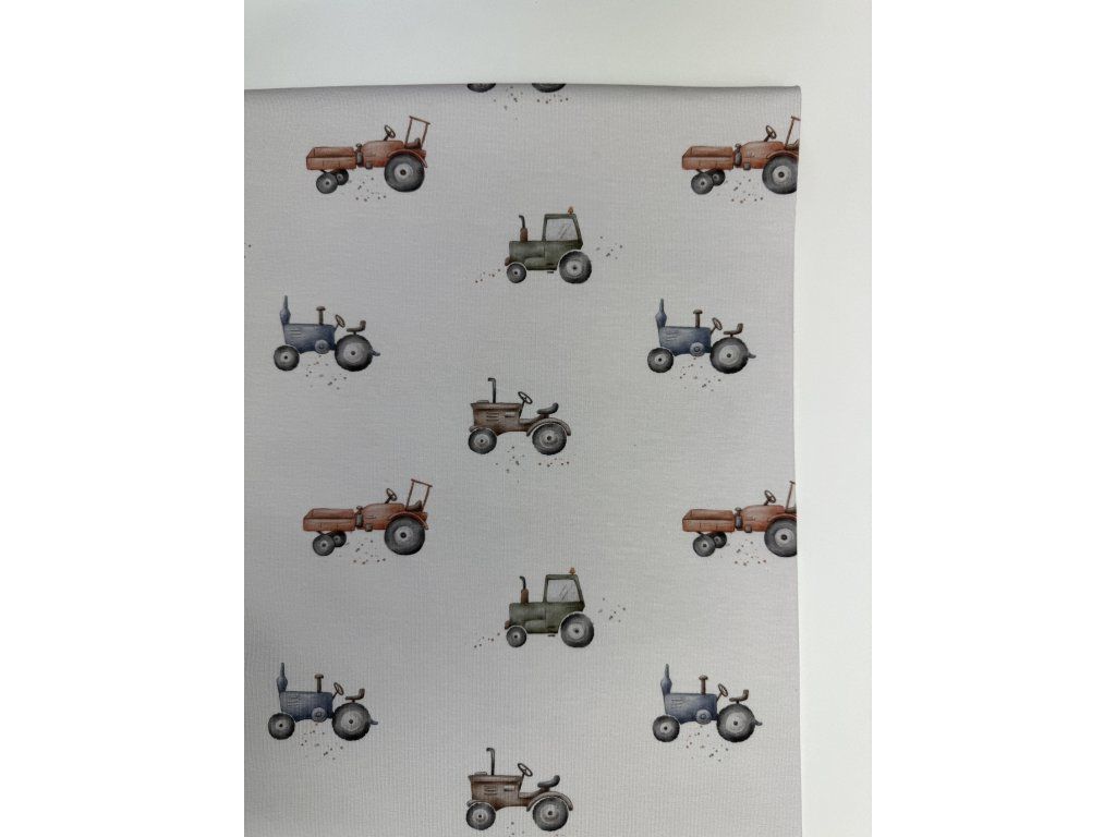 Úplet - Traktor 0,5 m je měkký a prodyšný úplet, vhodný na trička, šaty, pyžama i dětské oblečení. Materiál je poddajný, příjemný k pokožce a dobře se šije, takže je vhodný i pro začínající švadleny. Snadno jej zkombinujete s jednobarevnými i vzorovanými látkami.