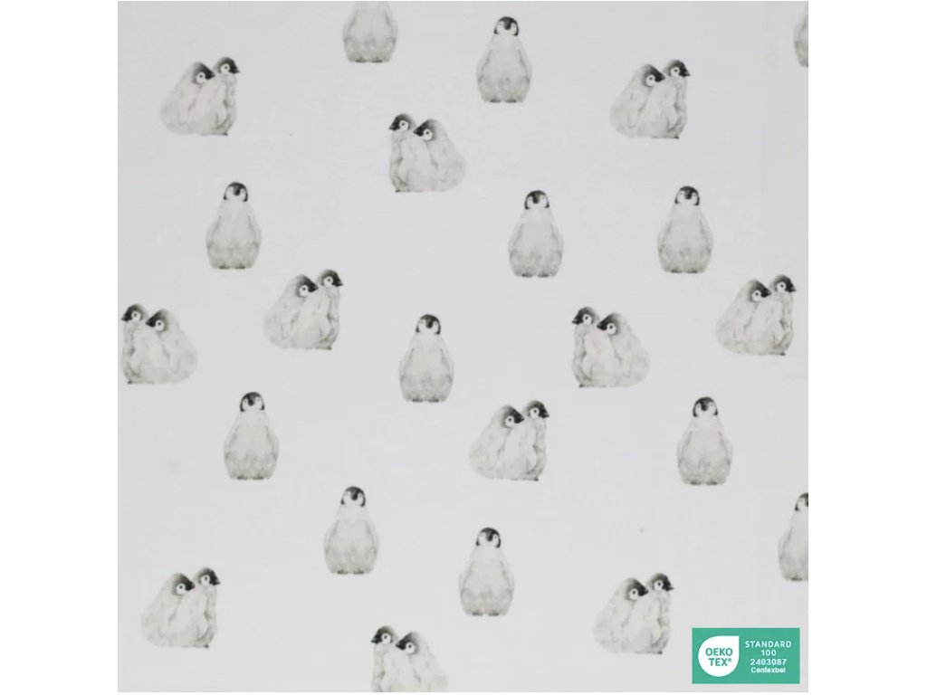 Úplet - Tučňáci je měkký a prodyšný úplet, vhodný na trička, šaty, pyžama i dětské oblečení. Materiál je poddajný, příjemný k pokožce a dobře se šije, takže je vhodný i pro začínající švadleny. Snadno jej zkombinujete s jednobarevnými i vzorovanými látkami.