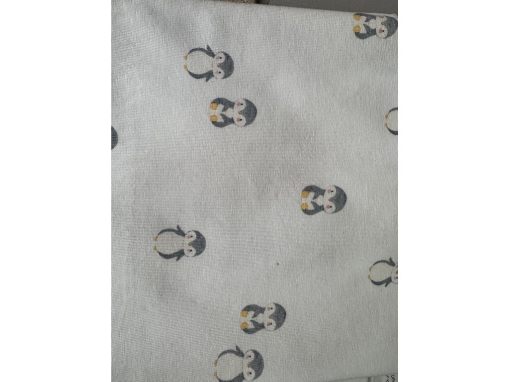 Úplet - tučňák na bílé- 0,4 je příjemná a pružná látka vhodná na trička, šaty i dětské oblečení. Snadno se kombinuje s dalšími materiály a dobře drží tvar.