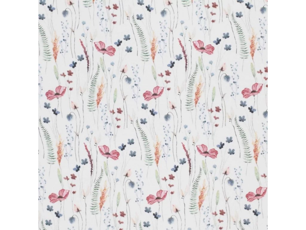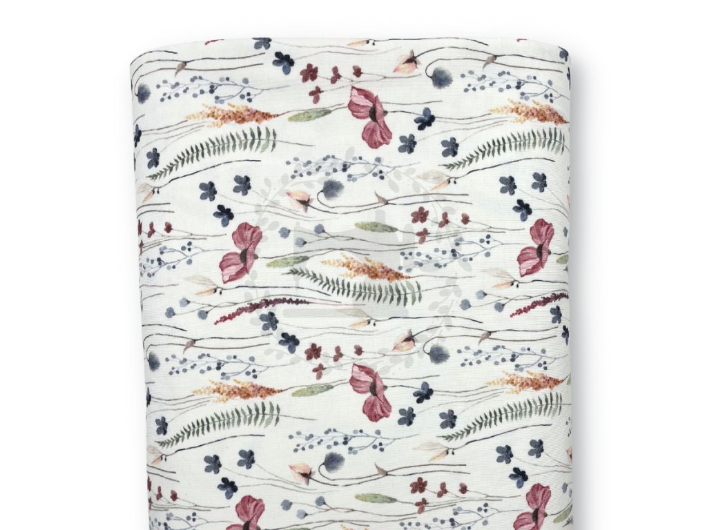 Úplet - Vlčí máky je měkký a prodyšný úplet, vhodný na trička, šaty, pyžama i dětské oblečení. Materiál je poddajný, příjemný k pokožce a dobře se šije, takže je vhodný i pro začínající švadleny. Snadno jej zkombinujete s jednobarevnými i vzorovanými látkami.