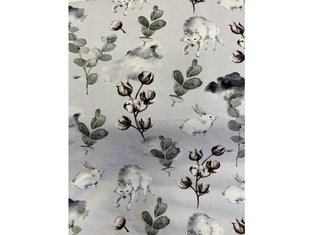 Úplet - Vlk a králík je měkký a prodyšný úplet, vhodný na trička, šaty, pyžama i dětské oblečení. Materiál je poddajný, příjemný k pokožce a dobře se šije, takže je vhodný i pro začínající švadleny. Snadno jej zkombinujete s jednobarevnými i vzorovanými látkami.