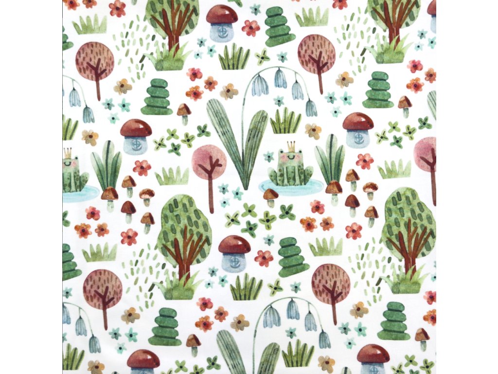 Úplet - Žabí královna je měkký a prodyšný úplet, vhodný na trička, šaty, pyžama i dětské oblečení. Materiál je poddajný, příjemný k pokožce a dobře se šije, takže je vhodný i pro začínající švadleny. Snadno jej zkombinujete s jednobarevnými i vzorovanými látkami.